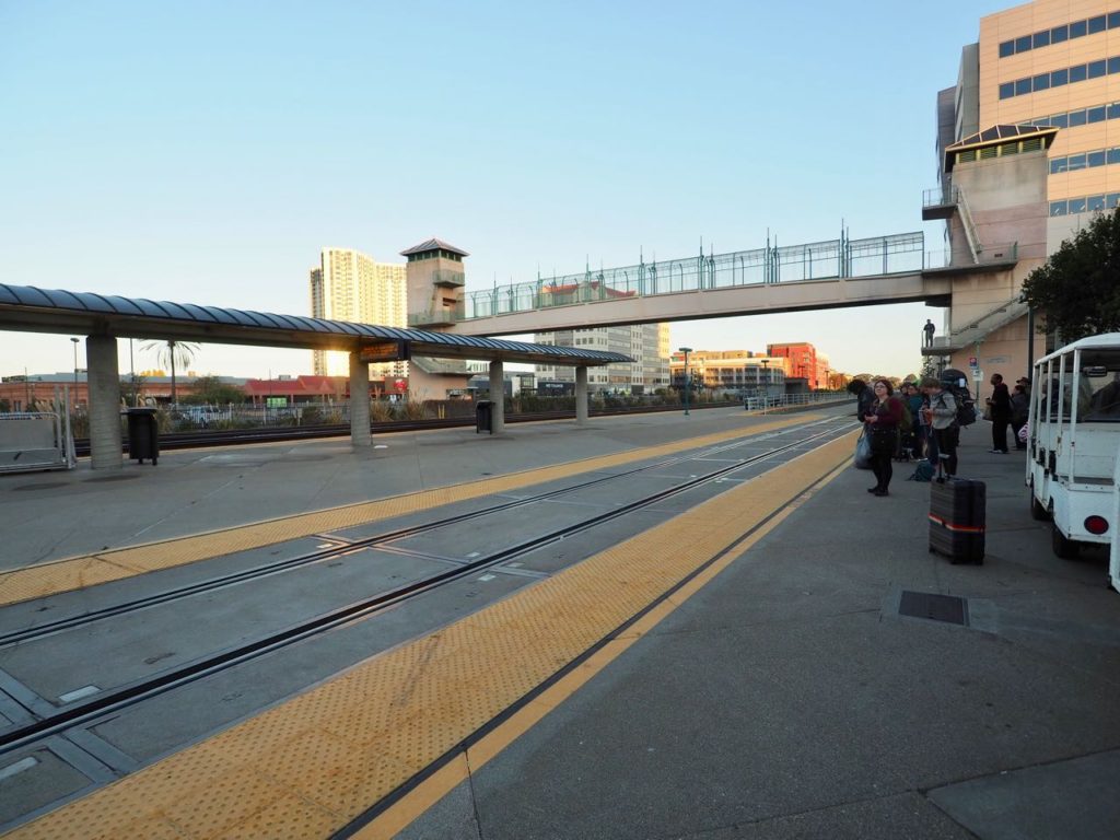 予定通り、列車アムトラックに接続するバスが来て、サンフランシスコの対岸のオークランドにあるエメリービル駅まで移動した。