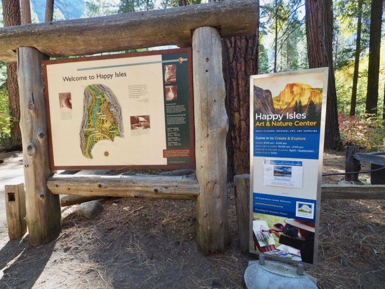 ヨセミテ-バレーの東端に位置するハッピー-アイル(Happy Isles)、ここにはネイチャーセンターと短いトレイルがある。