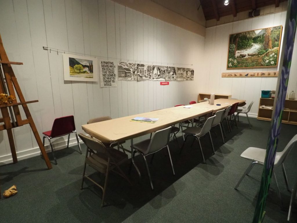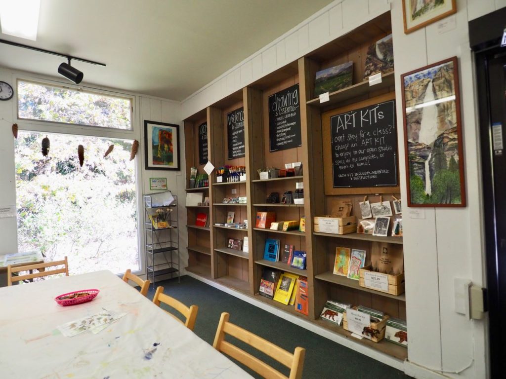 入り口すぐのところにも画材が売られ、ワークスペースがある。私が行った時には、スタッフの女性がここでお昼ご飯食べてたけど。