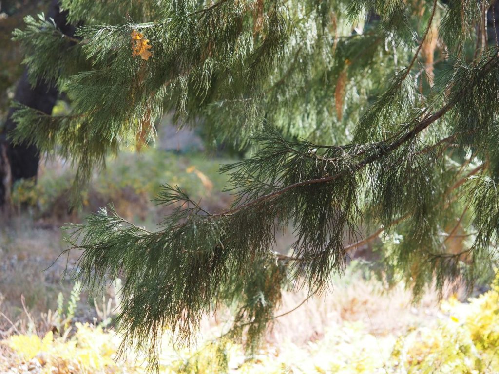 近くにはインセンス-シダーがあって、両方の葉を触らせて、違いを発見してもらう。