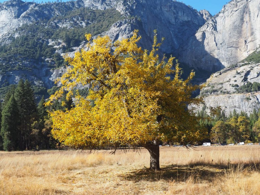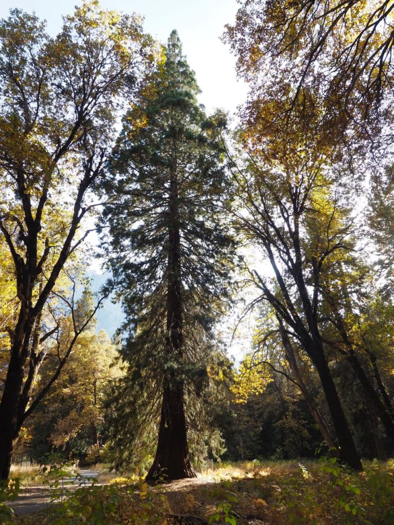 今回は行かれなかったけれど、ヨセミテ公園内には「マリポサ-グローブ」というジャイアント-セコイアの原生林があり、樹齢2700年というレベル(日本は縄文時代!)それに樹高は80mにもなる樹木。信じられない高さ!