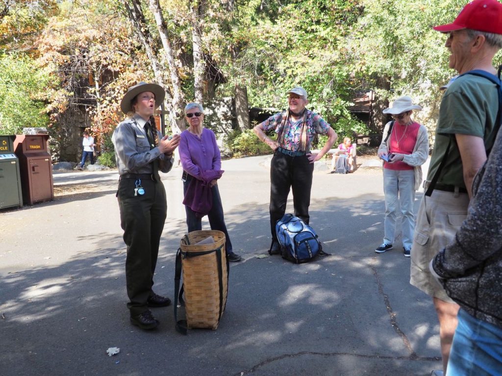 レンジャーのケイトからは、「ニューヨークのセントラルパークもとてもすばらしいところですね。人々が自然の中で楽しむところとしては、このヨセミテも同じ。だけど、ヨセミテと都市の公園は、何が違うのでしょう?・・・私たち人間が自然を享受することと野生の生き物たちの生態が守られること、この2つを実現するためにはどうすればいいのでしょう?」という質問を参加者に投げかけられる。
