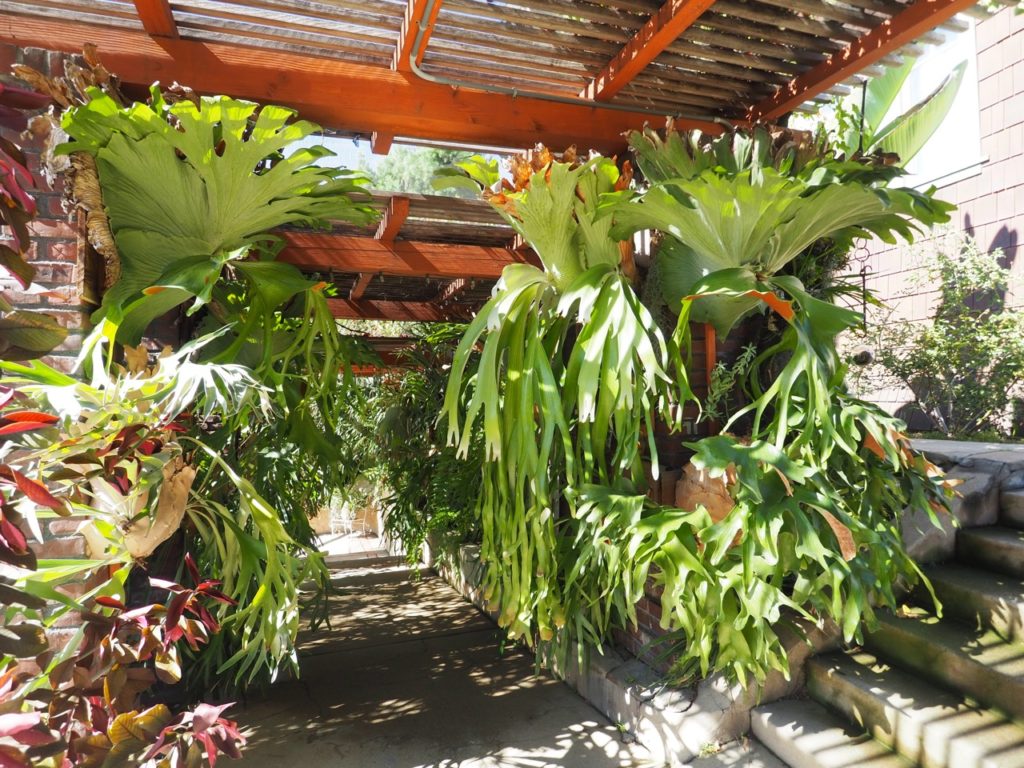 この回廊にはさまざまなシダ植物が育っていた。カリフォルニアでこれだけのシダ植物を育てるには、かなり水をしっかりやる必要があるだろう。