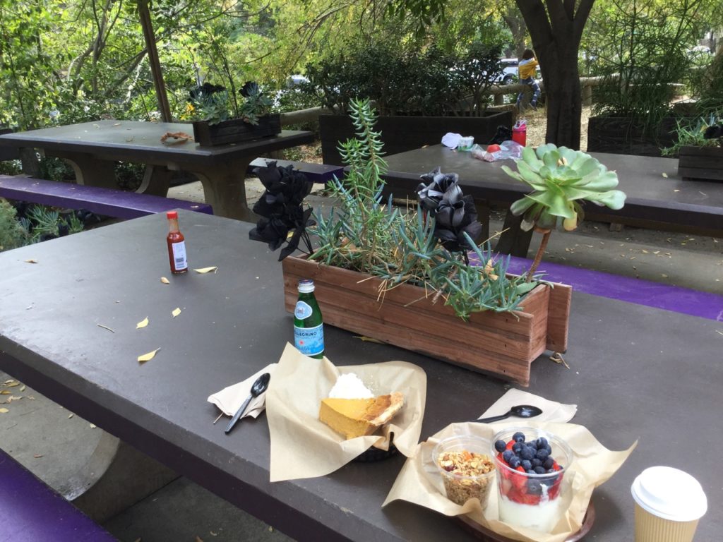 カリフォルニアはほとんど雨が降らないので野外のベンチだけでやっていけるんだね。