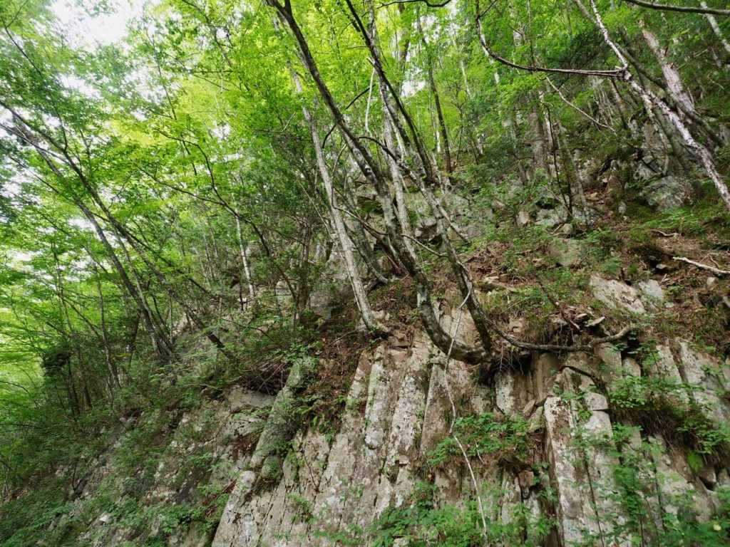 切り立った岩肌も多い。樹木たちにとっては過酷な環境だろう。