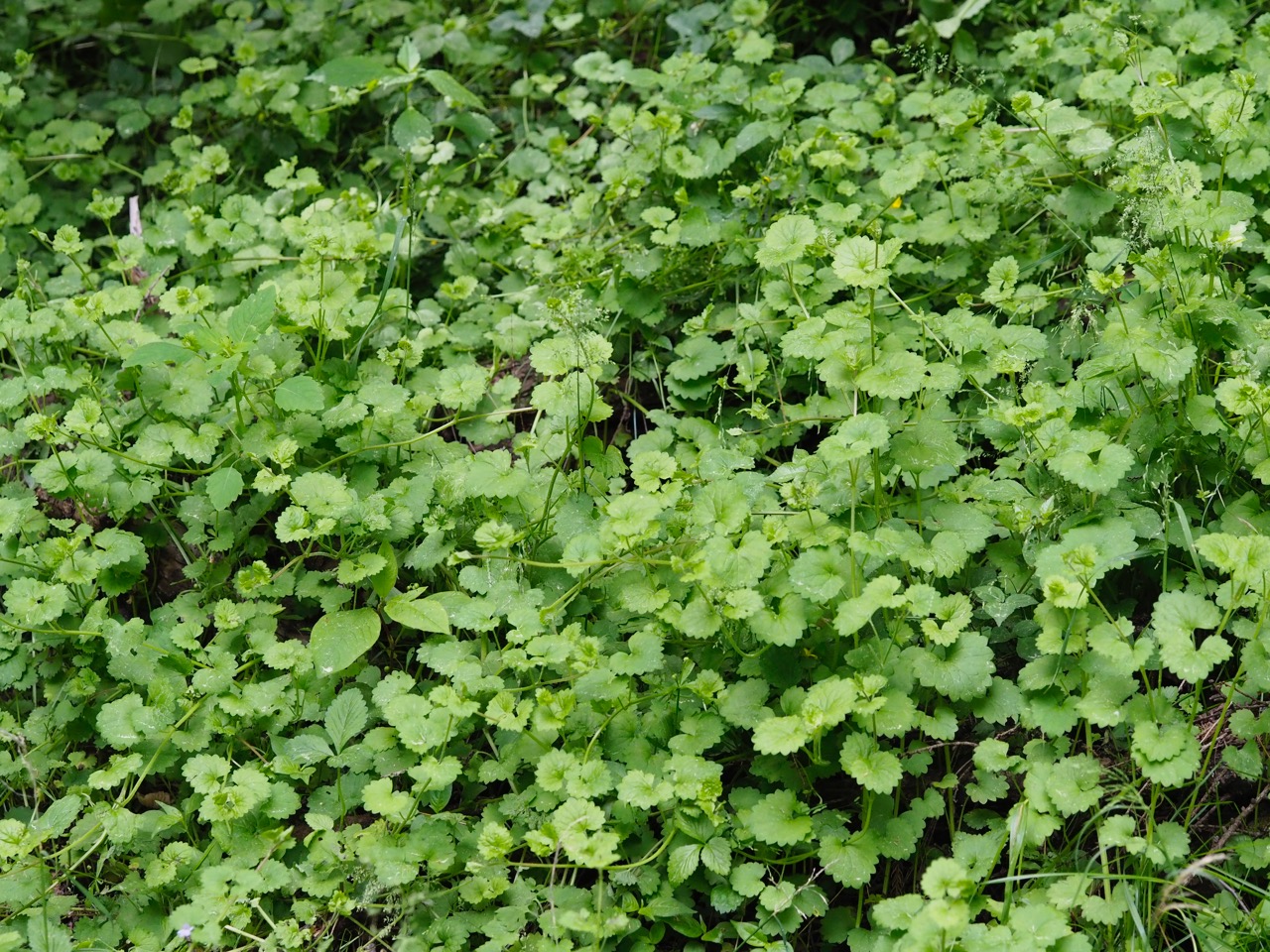 5月中旬は少し遅いかな、と思ったけれど、森のなかでぐんぐん茎を伸ばしている一面のカキドオシを見つけたので、やわらかそうな先の方だけ摘んで使った。