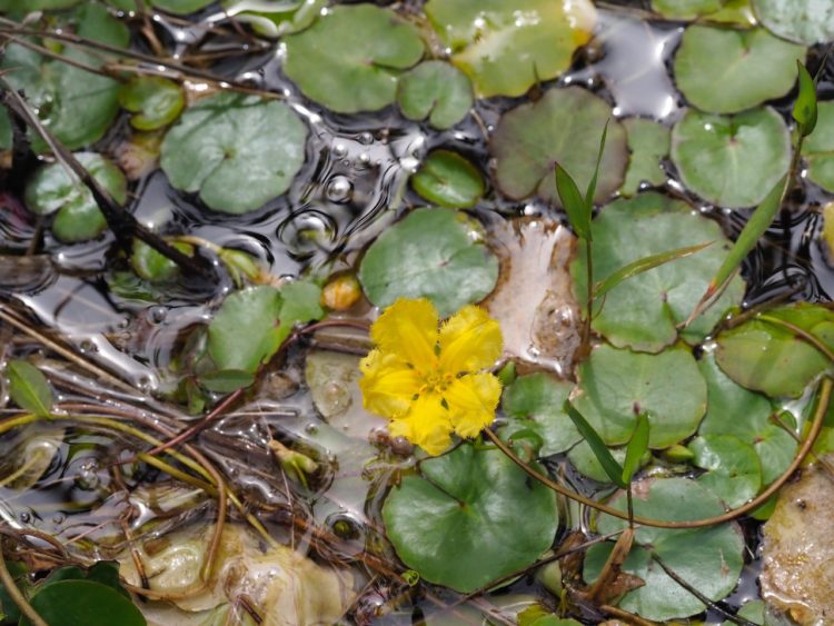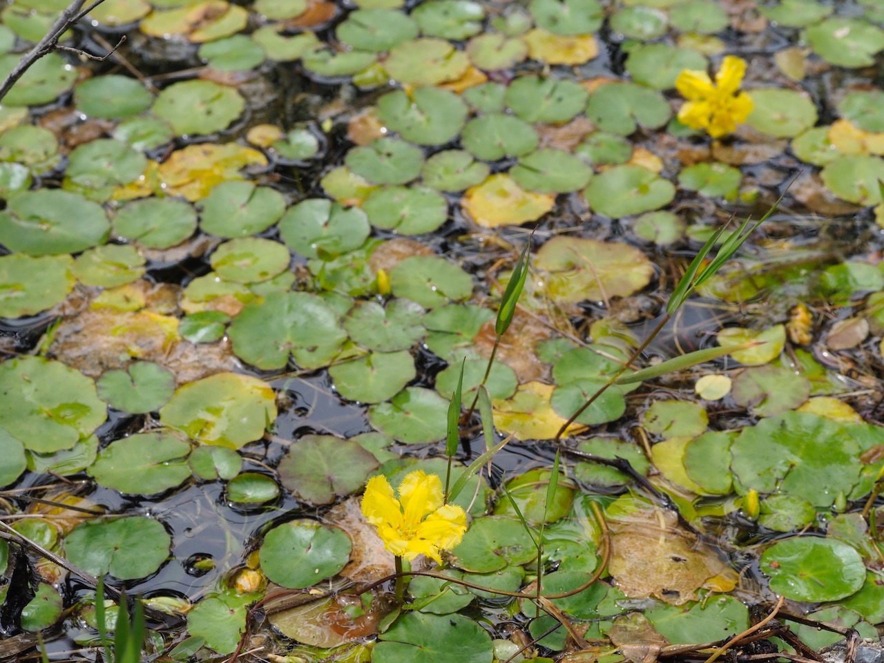 アサザが咲き始めていた。まわりでたくさん蕾があがっている。いちめんに黄色く咲くのだそう。