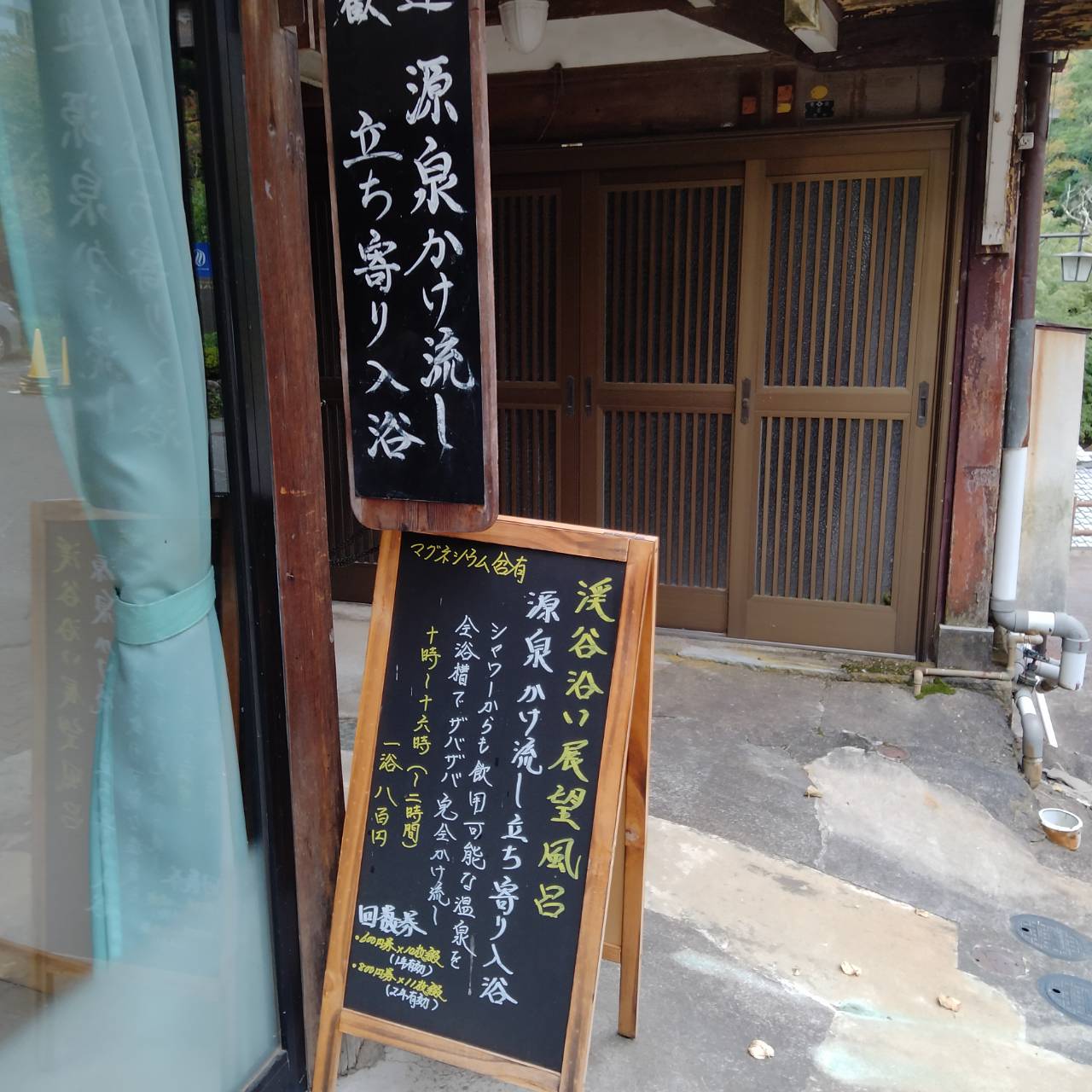 通り過ぎようとした、こじんまりした旅館の表に、なんとも魅力的な看板が。