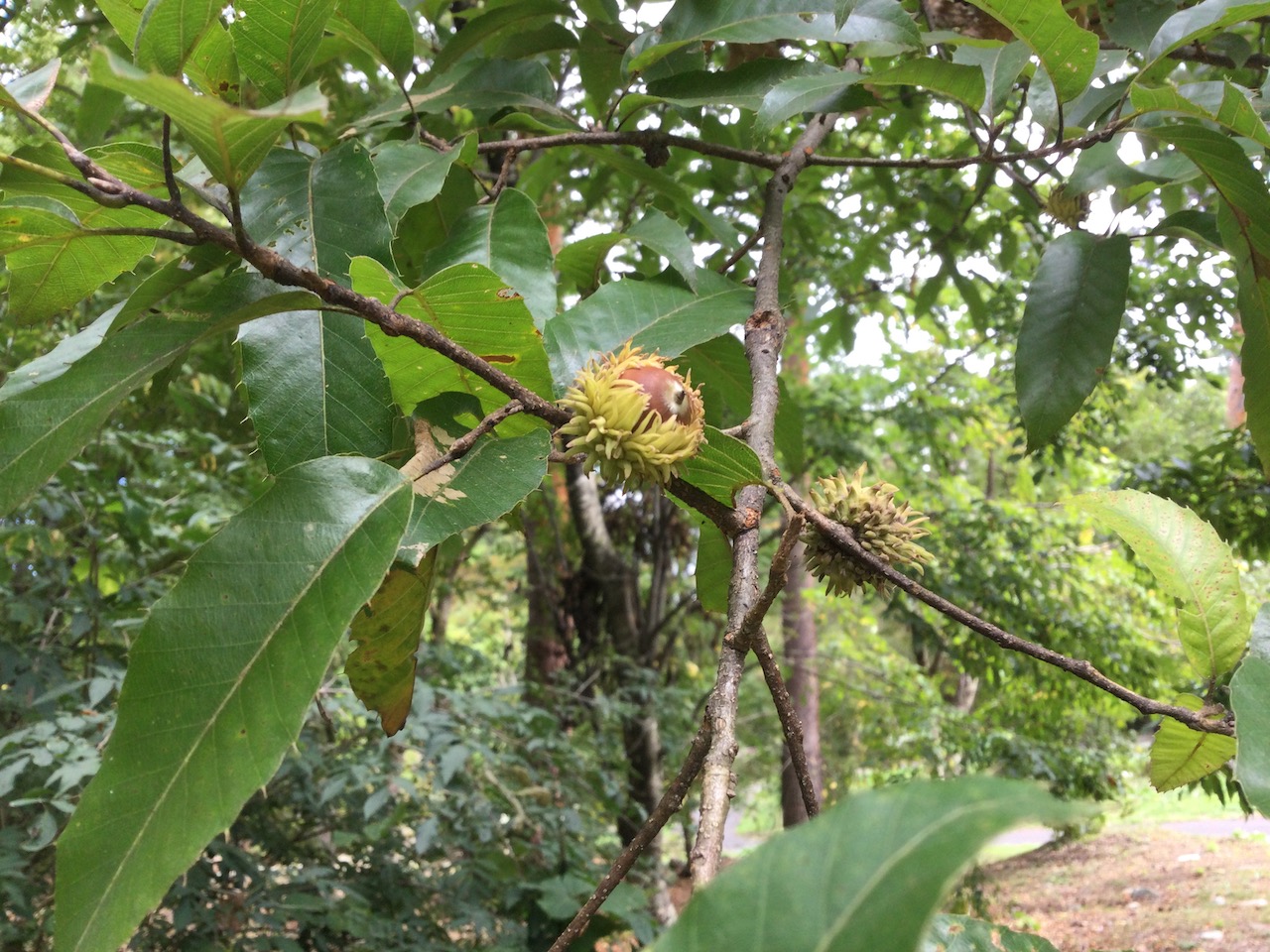 最初に見つけたのは、足元にたくさん落ちているクリ。