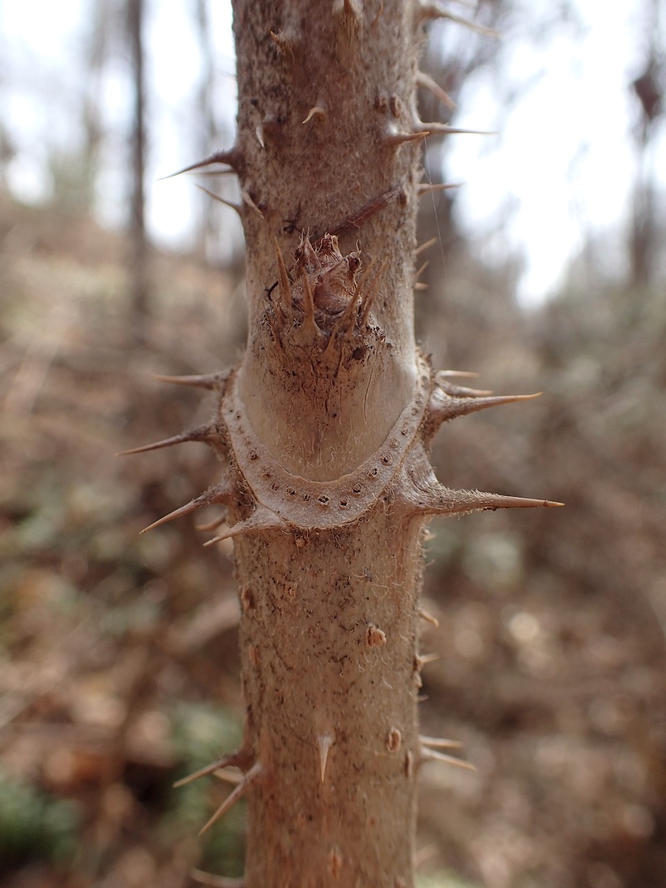 右はタラノキの冬芽。