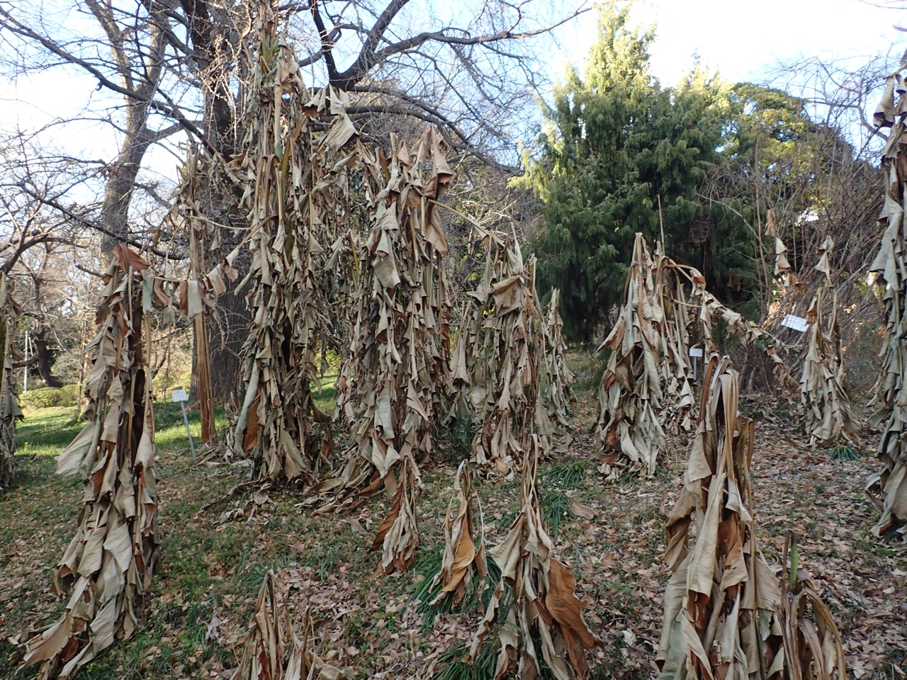 一周りしてきて、再び入り口で待っていたのは、バショウ(バショウ科)の枯れた後。
