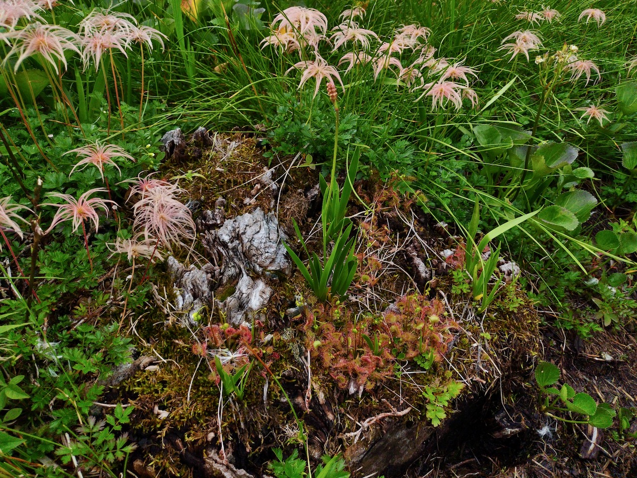 朽ちた切り株のうえの植物たちの生命の営み 小さな宇宙のよう