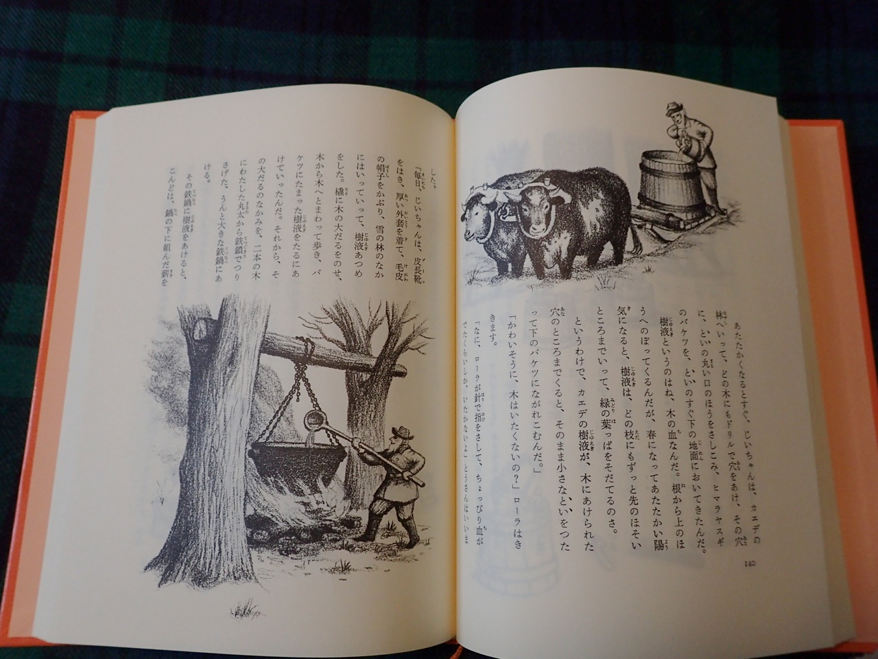 「大きな森の小さな家」、アメリカのウイスコンシン州の森のなかで、じいちゃんが集めるメープルシロップのエピソードです。それは他の誰でもない、ガース・ウィリアムスの挿絵で。