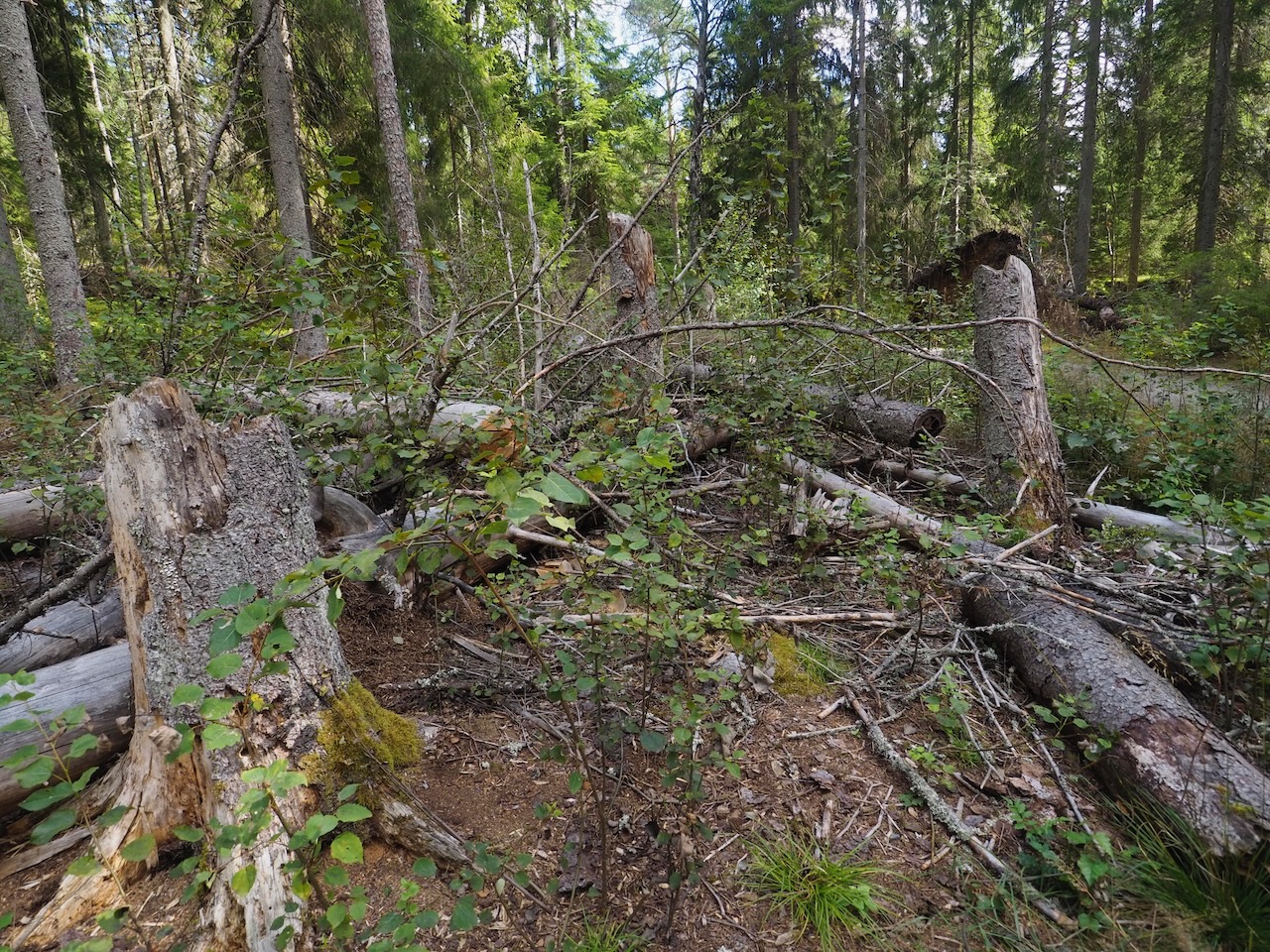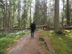 私たちは公園のガイドのマッツさんの案内で森を歩いていた。すると針葉樹の倒木が複数みられるエリアで、マッツさんから「この森は健康だと思いますか?」と投げかけられた。