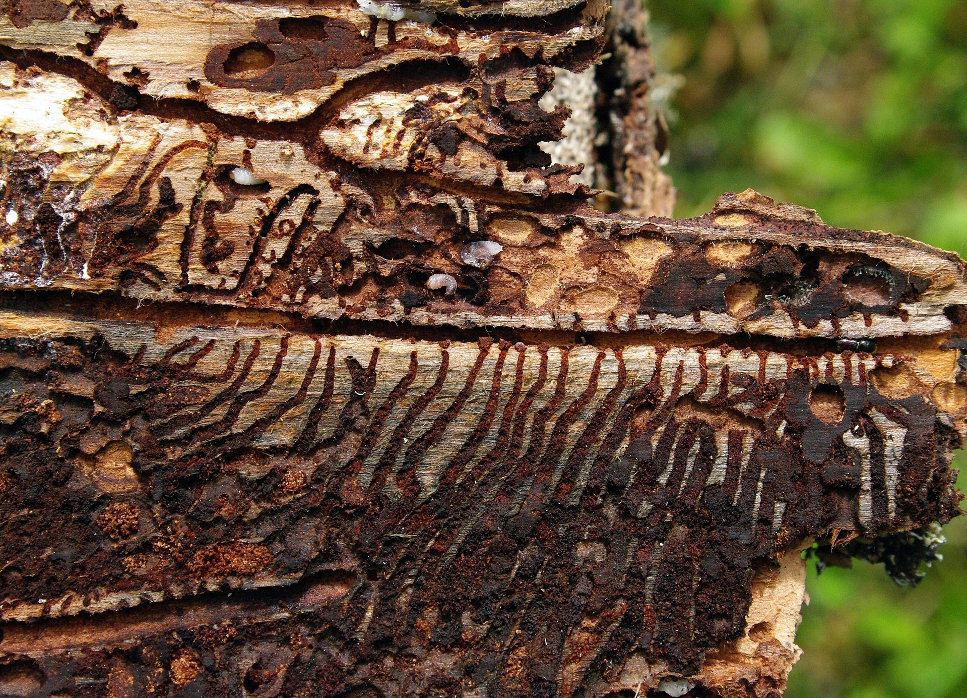 なんと、学名を記載したのはカール・フォン・リンネだった(1758年)。typographus という種小名は彫刻家という意味だという、なかなか素敵。詳しい生態はこちらに。(forestresearch))