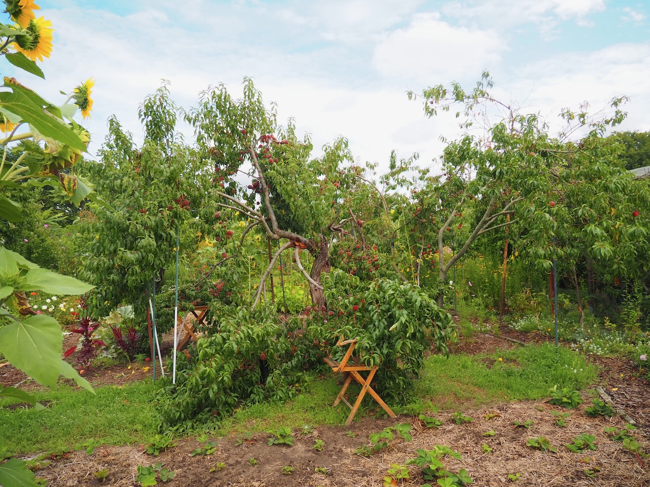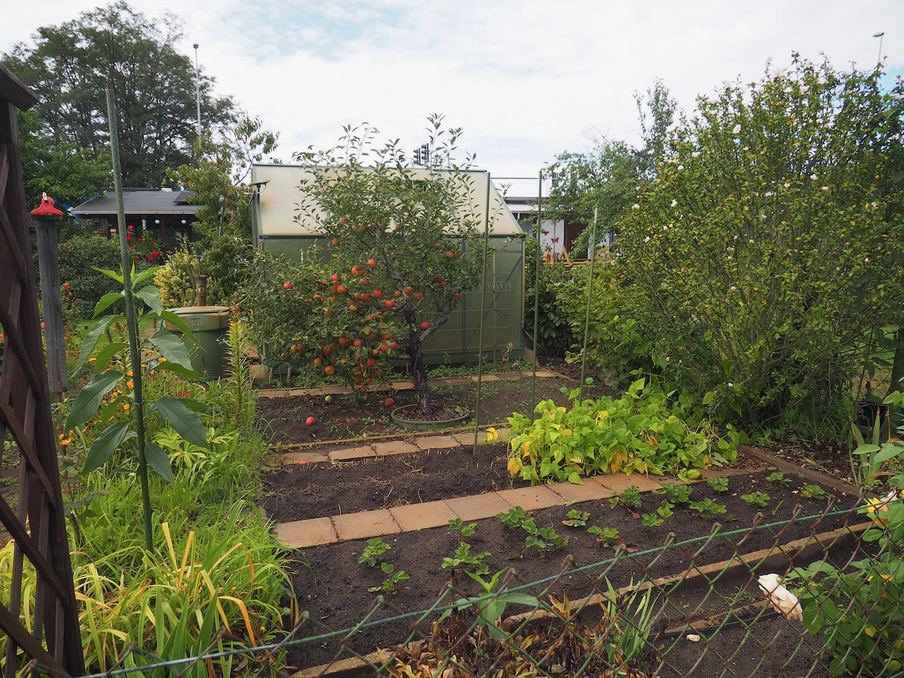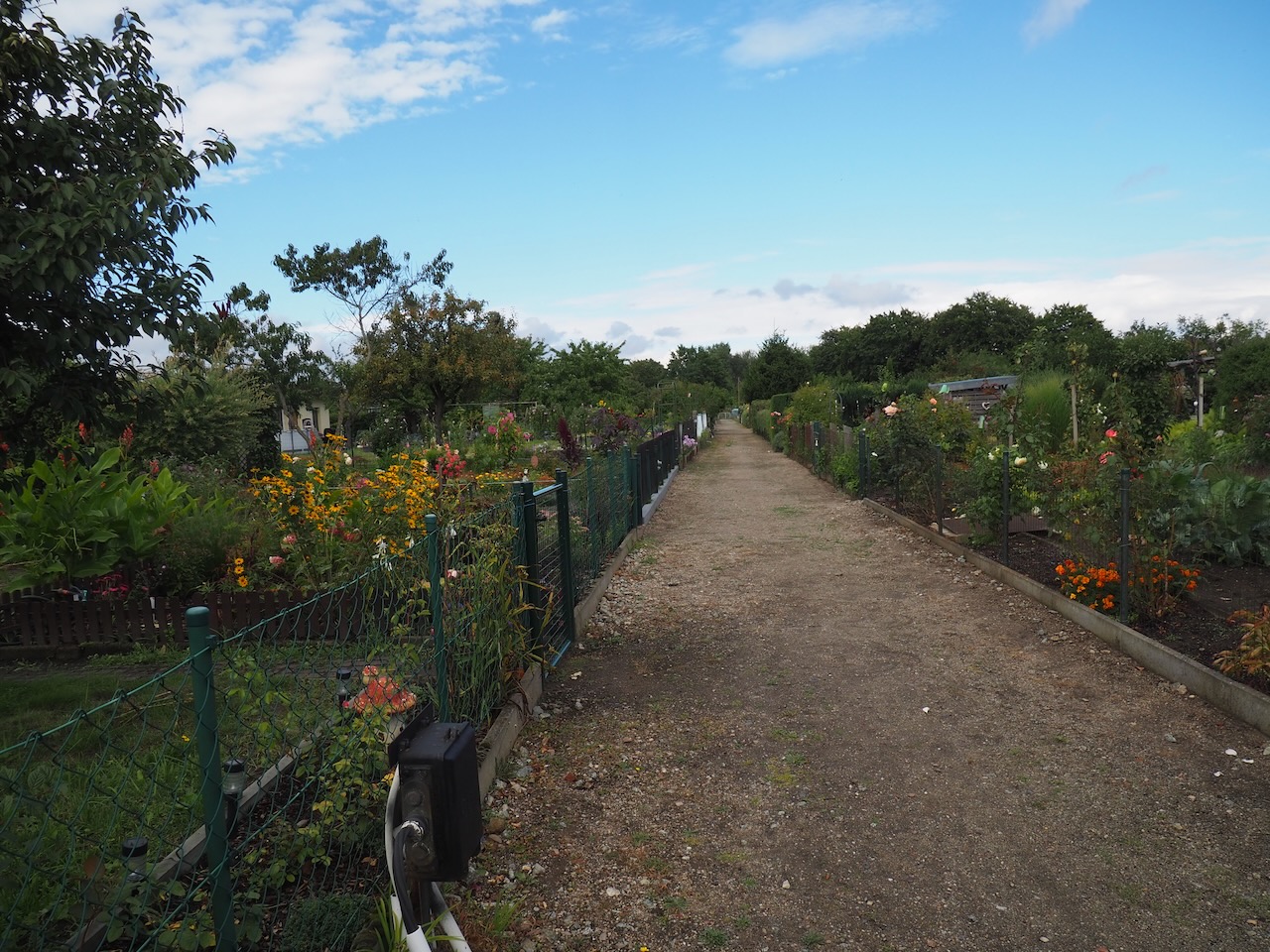 1区画の幅は15mほどで、どの区画にも奥の方に小屋がみえる。小屋はちょっとした滞在ができるようになっているらしい。ふぅん、お庭にはリンゴの木が必ずあるんだな。お野菜よりも花と果樹が多いんじゃないかしら。どの庭も整えられすぎていないところが、かえって好ましいかんじ。