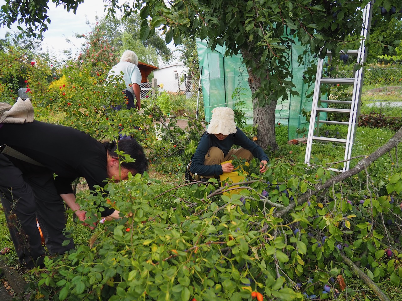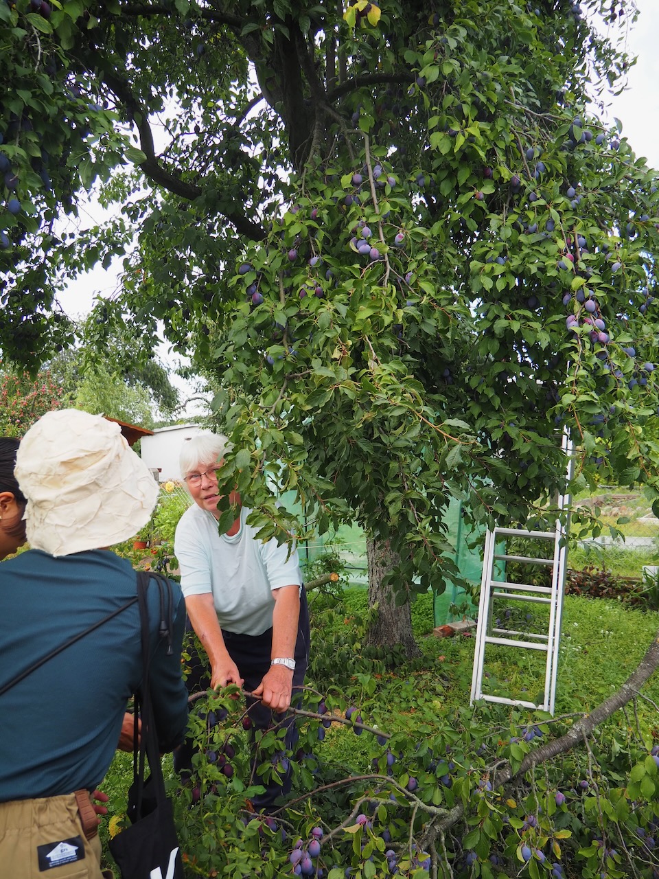 私たち一行はよろこんでお邪魔して、みんなでせっせと落ちた枝のプルーンを摘みはじめた。