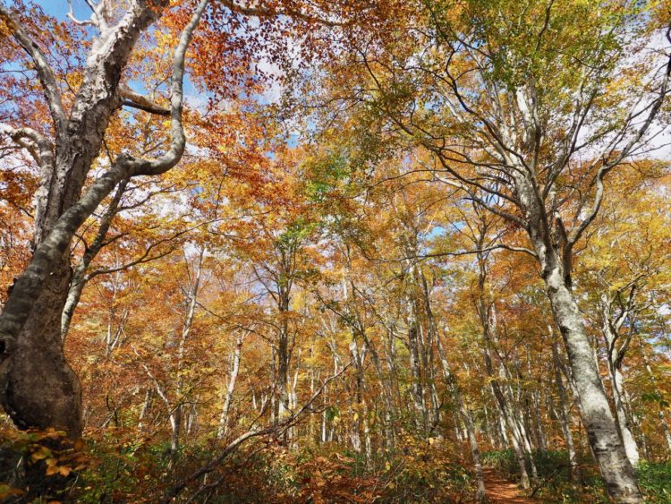 樹冠も、幹と幹の間も、目の前のすべての空間がブナの樹林で充たされている。その景観に圧倒される・・・