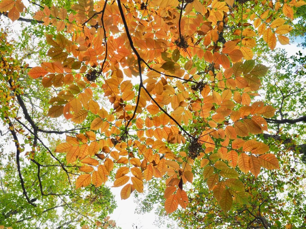 コシアブラは葉の葉緑素が分解すると、紅や黄が現れるのではなくて、そのまま色を失っていく。その白さが逆に印象的。