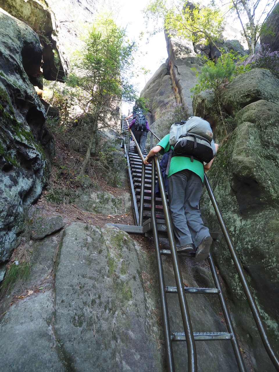 だんだん岩が出現して、最後は岩の間に取り付けられたはしごをよじ登って岩の上へ。
