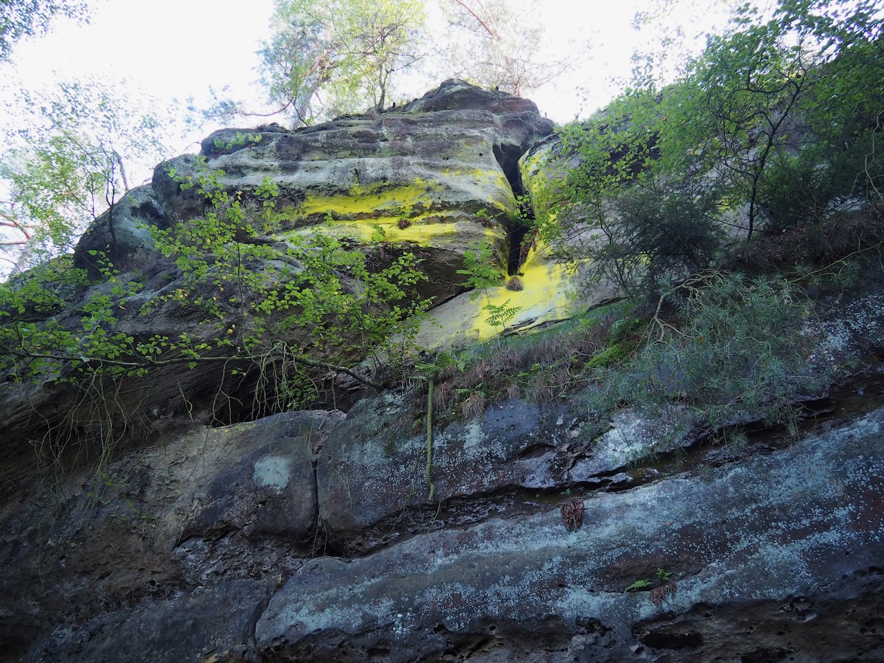 この岩だが、岩肌を触ると砂岩であることがわかった。フォッサマグナの地質と似ている。きっとここは海底が隆起してできた砂岩に違いない。